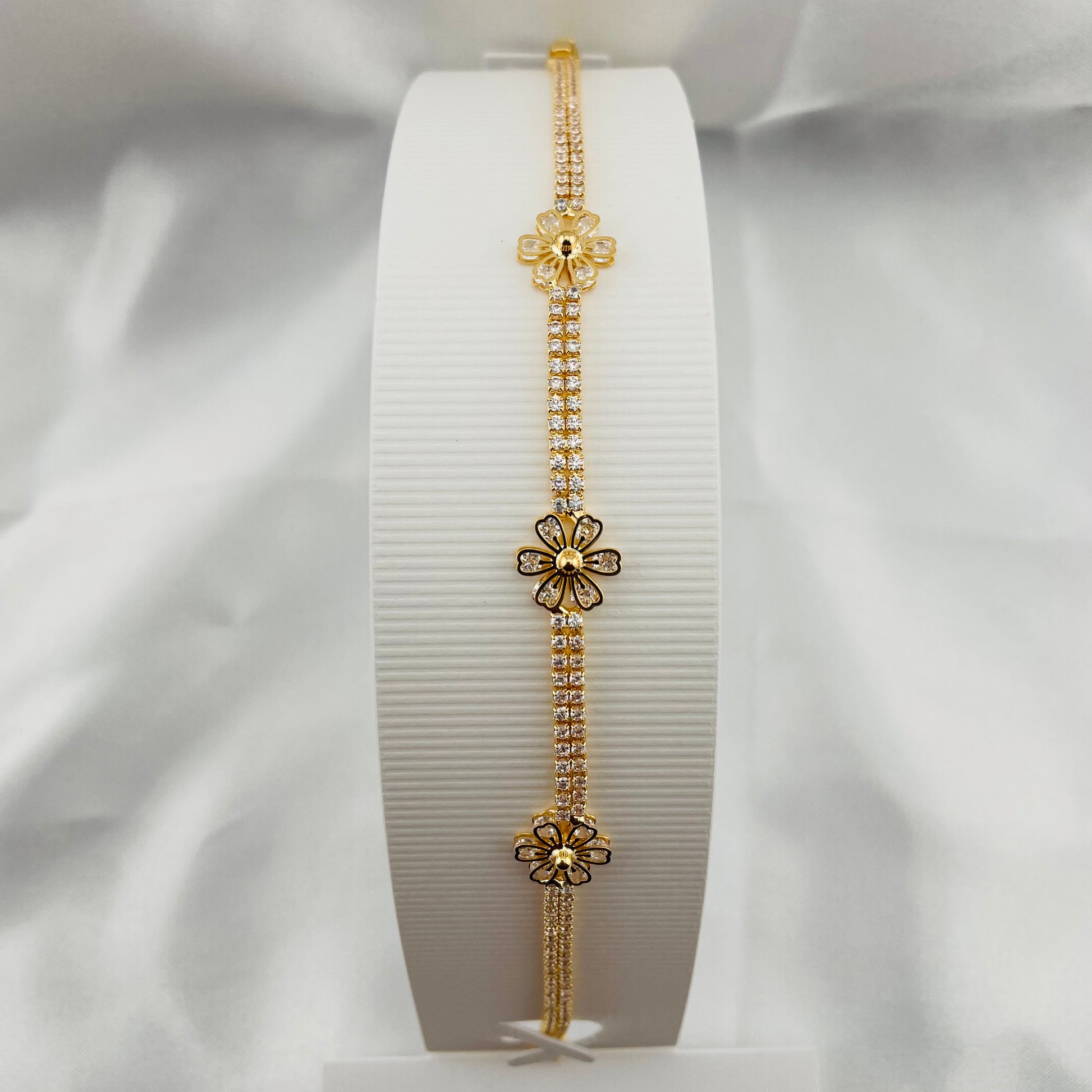 Floral Crystal Tennis Bracelet – Stone-Studded Flower Motifs | Imitation Gold Fashion Jewelry