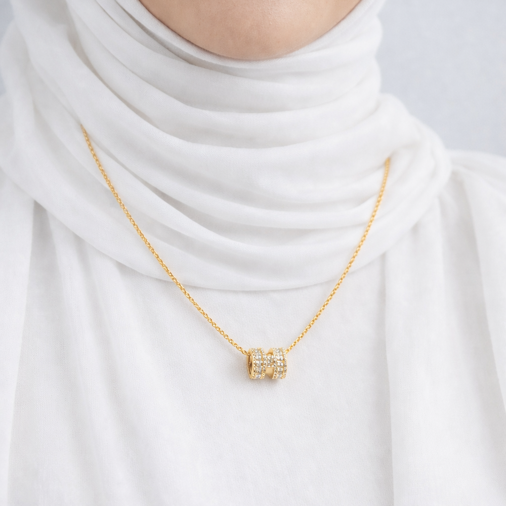 NECKLACE WITH CRISTAL ROLL PENDANT, ADJUSTABLE CHAIN, FASHION JEWELRY IMITATION GOLD