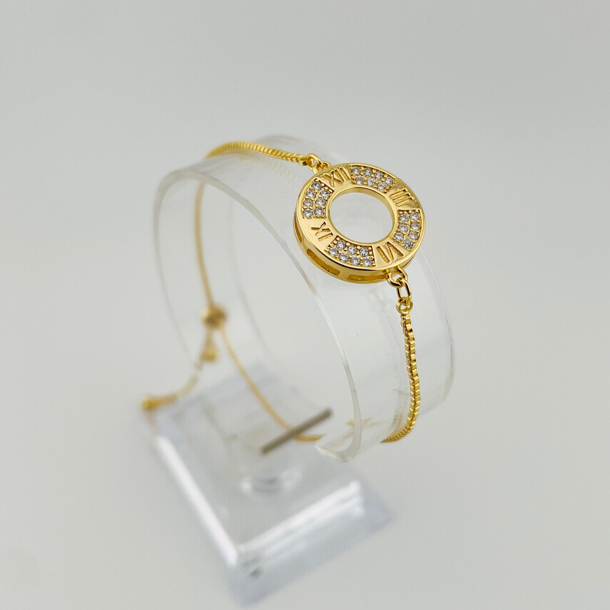Roman Numeral Circle Stone Bracelet – Adjustable | Imitation Gold Fashion Jewelry