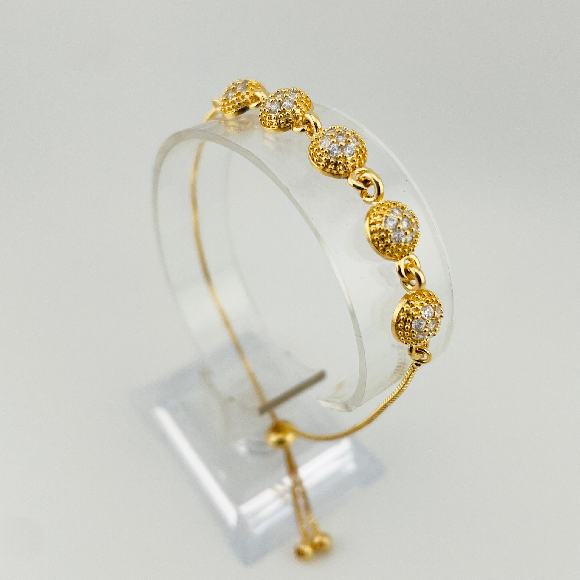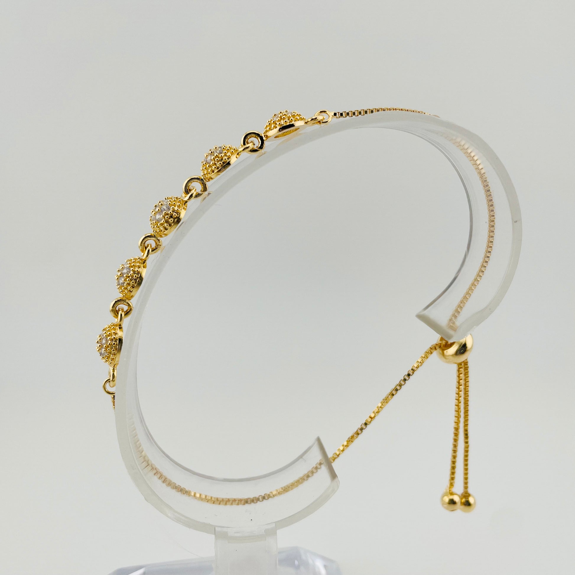 Finished in a radiant imitation gold tone, the bracelet includes an adjustable sliding clasp for a comfortable and secure fit on most wrist sizes. Lightweight and graceful, it’s the perfect accessory to complement both modern and traditional outfits for special occasions.