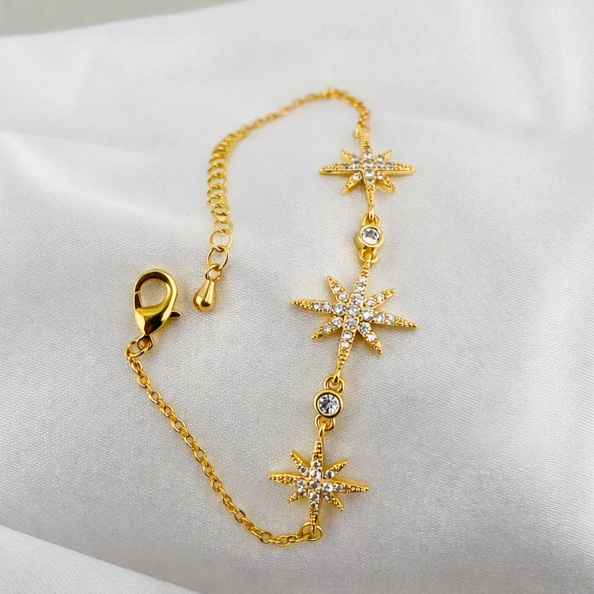 This celestial-inspired star charm bracelet adds timeless elegance and sparkle, making it a perfect choice for gifting or elevating your special occasion outfits.