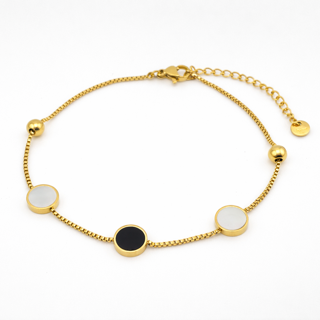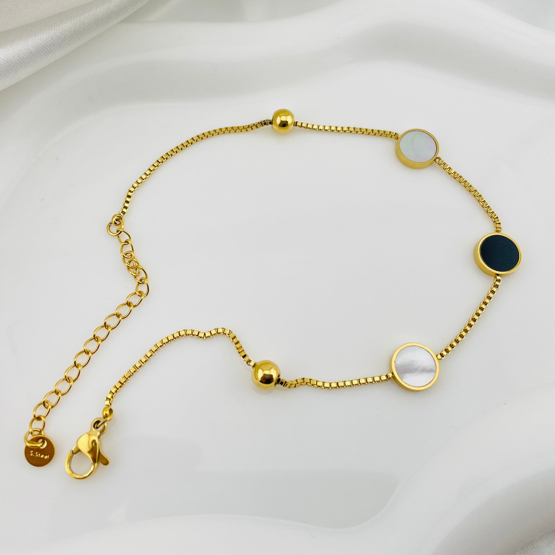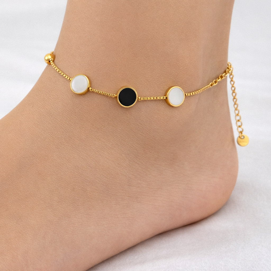 Triple Disc Anklet 1 Pcs – Black & White Enamel Circles | Anti-Tarnish Stainless Steel, Gold Finish